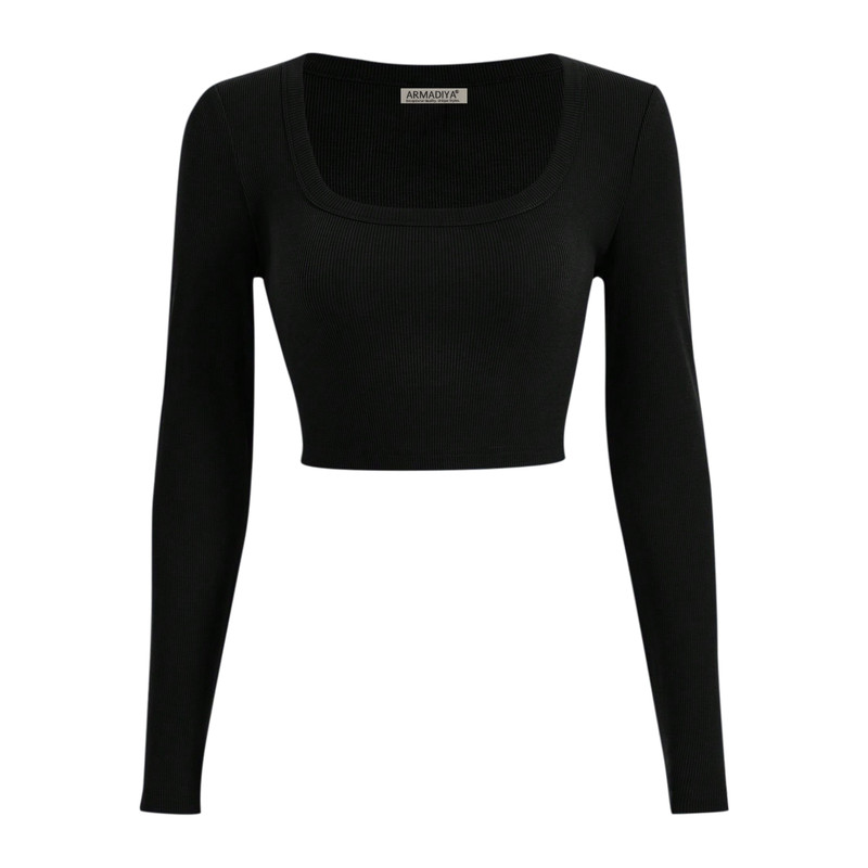 کراپ تیشرت آستین بلند زنانه آرمادیا مدل کبریتی یقه اسکوپی کد BK06