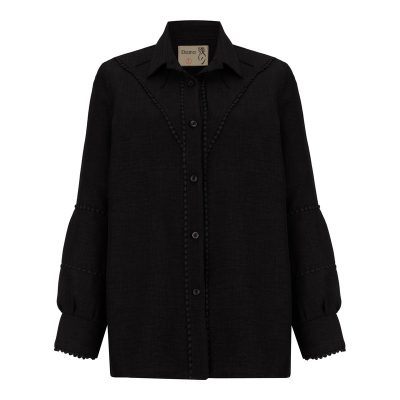 شومیز آستین بلند زنانه مدل بندی رنگ مشکی
