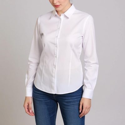 شومیز آستین بلند یقه برگردان زنانه مدل درنا 0002 رنگ سفید
