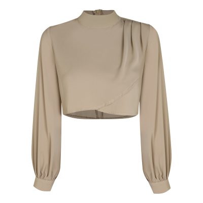 بلوز آستین بلند یقه ایستاده زنانه نیزل مدل 1175 رنگ کرم