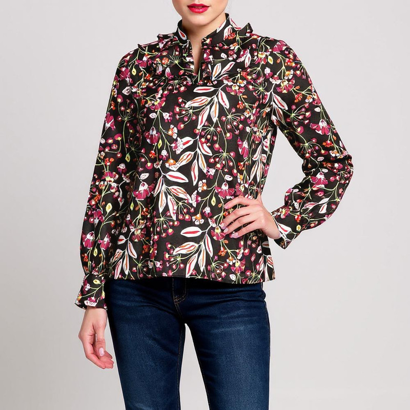 شومیز آستین بلند زنانه مدل لینن چاپی فلورا