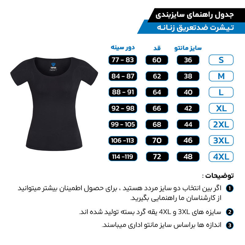 تیشرت ضدتعریق زنانه طرحدار مشکی /دارای لایه محافط با جذب بسیار بالا /جنس 100% نخ پنبه /مانع از ایجاد لکه در زیر بغل /از سایز s تا 4XL / طرح چهره و ماه است