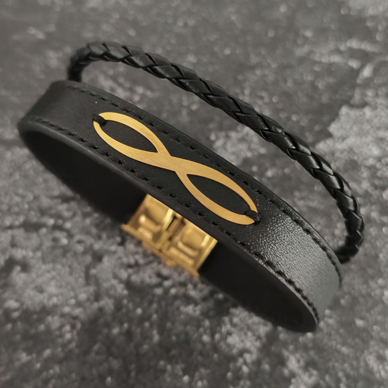 دستبند چرم و طلای طرح بینهایت، یه کار خاص و شیک برای آقایون میباشد.