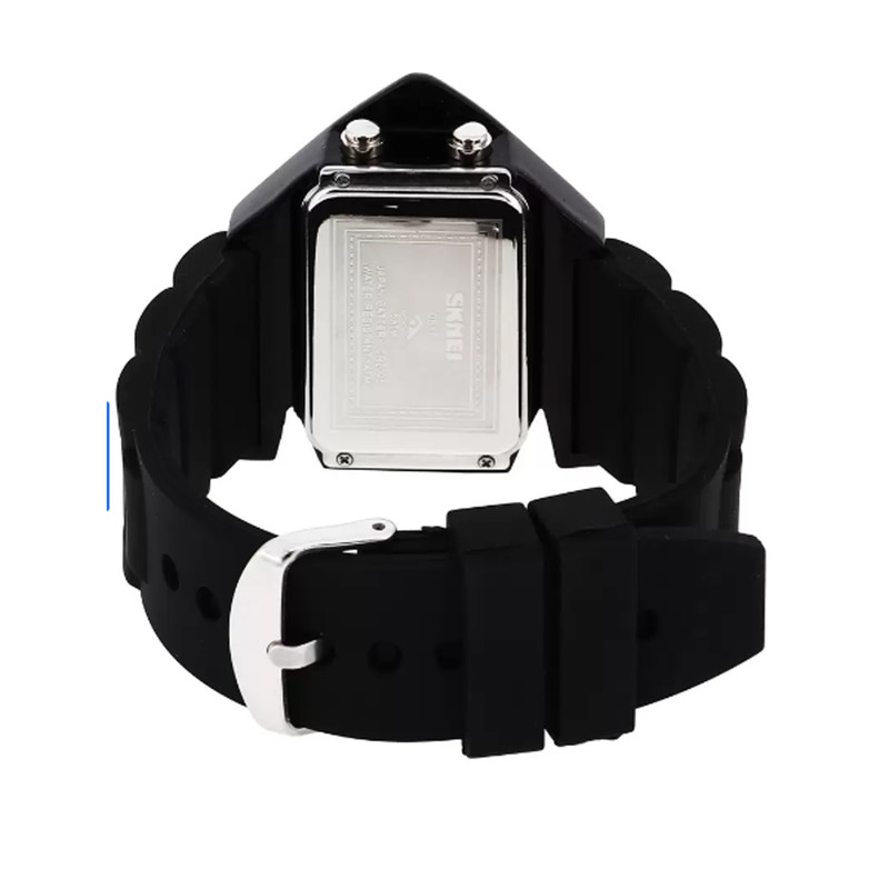 ساعت های مچی دیجیتال اسکمی از آن دست ساعت های مچی به شمار می روند که دارای امکانات مناسب و قیمت مقرون به صرفه هستند ، در این میان ساعت مچی دیجیتال اسکمی مدل S-0817 دارای یک طراحی جذاب و پر مخاطب برای زنان و مردان به شمار می رود. این ساعت مچی SKMEI دارای بند سیلیکونی مقاوم و با کیفیت ، قفل سگکی و فرم چند ضلعی جذاب با نور بک لایت قابل کنترل در صفحه است که به راحتی با دکمه S4 می توانید از ویژگی نور پس زمینه آن در تاریک ترین نقاط استفاده نمایید. مدل S-0817 دارای نشانگر هفته ، ساعت ، دقیقه و ثانیه است. یکی دیگر از ویژگی های این ساعت مچی استفاده مشترک آن بین آقایان و بانوان بوده و از آن در حین ورزش نیز می توانید استفاده نمایید و علاوه بر این موارد مهمترین ویژگی این ساعت مچی قابلیت ضد آب بودن آن تا عمق 50 متر است. ساعت مچی دیجیتال اسکمی S-0817 دارای قابلیت تنظیم آلارم و هشدار برای یادآوری و بیدارباش و… است.