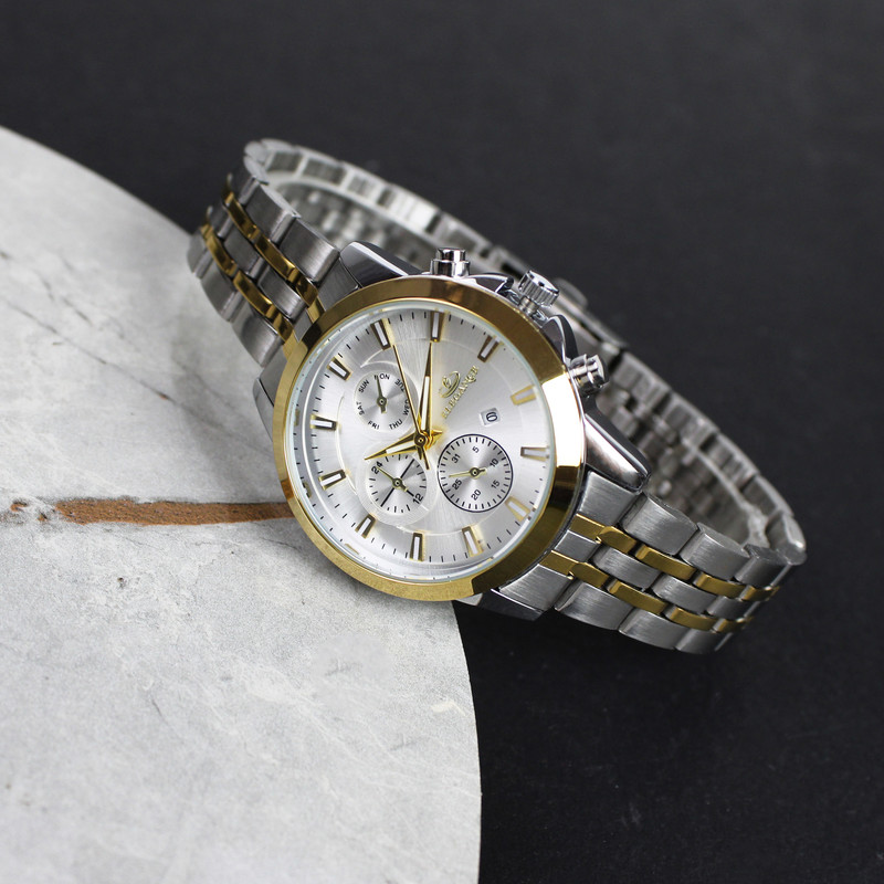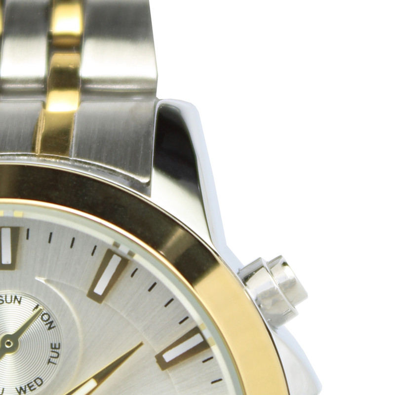 صفحه ی ساعت این برند دارای شیشه با سختی بالا می باشد، همچنین قلب تپنده ی آن یعنی موتور ساعت، از نوع کوارتز است. به دلیل اقتصادی بودن این ساعت فقط موتور اصلی و تقویم آن کار میکند و سه موتور بقیه نمایشی هستند . این ساعت به شکل دایره طراحی شده است که دارای قطر 38 میلی متر و بی نهایت ظریف است و مناسب برای بانوانی که دستان ظریف دارند توصیه می شود.