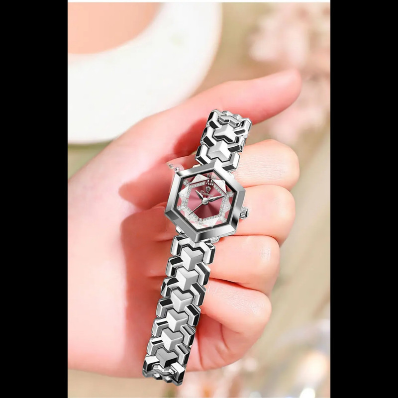 ساعت مچی عقربهای کوارتز زنانه بین باند مدل مینیمال لوکس بند استیل قفل دستبندی کد ۲
