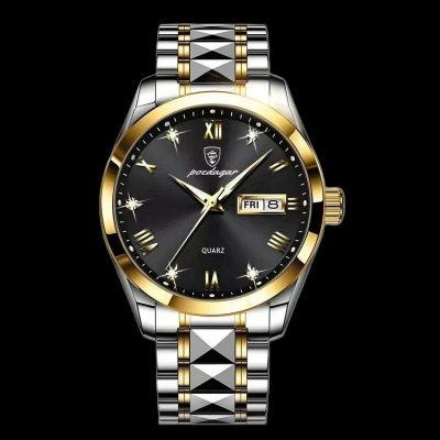 ساعت مچی عقربهای کوارتز مردانه پوداگار مدل الماسی تک موتور دو تقویمه کد 17