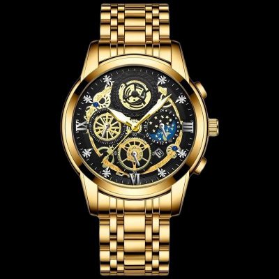 ساعت مچی عقربهای کوارتز مردانه بین باند مدل کلاسیک بند استیل سه موتور فعال کرنوگراف کد A3