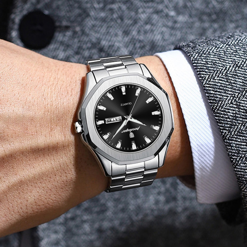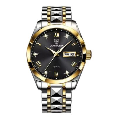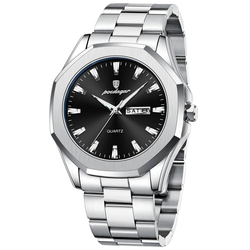 ساعت مچی عقربهای کوارتز مردانه پوداگار مدل تک موتوره دی دیت بند استیل الماسی قفل مخفی کد P1.1