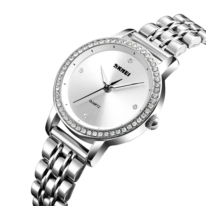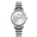 قبل از خرید ساعت مچی چه زنانه و چه مردانه باید یک سری نکات را در نظر بگیرید تا هنگام خرید سردرگم نشوید و بتوانید بهترین تصمیم را بگیرید. اینکه در کجا میخواهید از آن ساعت استفاده کنید ، عامل اصلی تصمیم گیری در خرید طرح ساعت است. ساعت مچی عقربه ای زنانه اسکمی مدل 1311 کد 02 قطعاً انتخاب مناسبی برای شما است؛ زیرا در کنار طراحی زیبا کیفیتی بی نظیر در اختیار شما قرار میدهد. این ساعت صفحه ای گرد از جنس فلز دارد که بهوسیله بندی تماما نقرهای دور مچ قرار میگیرد. قفل آن دستبندی بوده و جنس شیشه آن معدنی است. میزان مقاومت این ساعت در برابر آب 3ATM است و چون از فلز ضد زنگ ساخته شده آسیبی به آن وارد نمیشود. همیشه باید در انتخاب ساعت توجه زیادی به خرج دهید زیرا پوشیدن یک ساعتی که با تیپ و استایل شما ست نباشد جلوه جالبی ندارد. درواقع، ساعت مچی میتواند باعث زیباتر کردن و یا به هم ریختن ظاهر شما شود. اما اگر ساعت را نمایانگر شخصیت خود بدانید، انتخاب آن، چندان هم دشوار نخواهد بود.