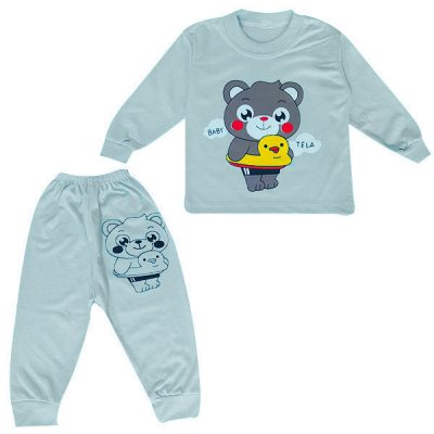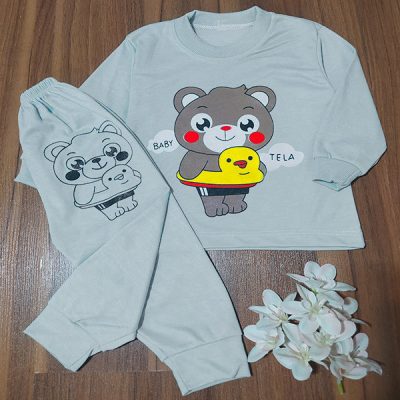 ست تی شرت و شلوار بچگانه مدل خرس و اردک کد Tu7 رنگ طوسی