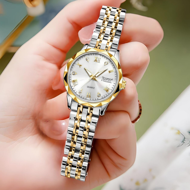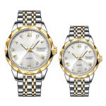 ست ساعت مچی عقربهای کوارتز زنانه و مردانه مدل کلاسیک لوکس دی دیت بند استیل طرح بافت کد ۱.۳