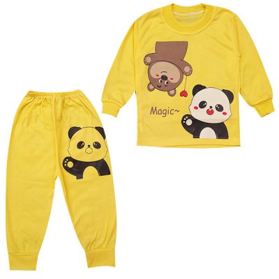 ست تی شرت و شلوار بچگانه طرح خرس و پاندا کد Za4 رنگ زرد