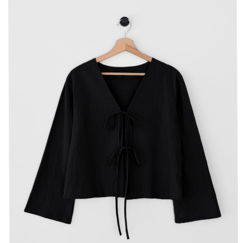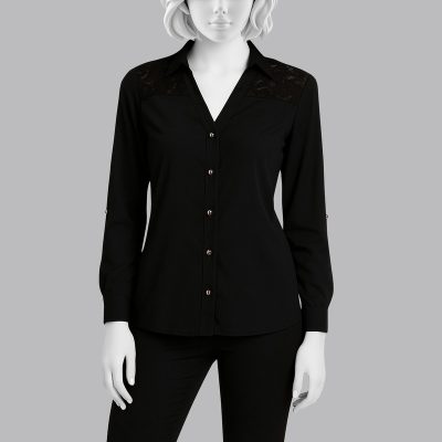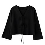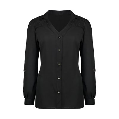 شومیز آستین بلند زنانه مدل بندی رنگ مشکی