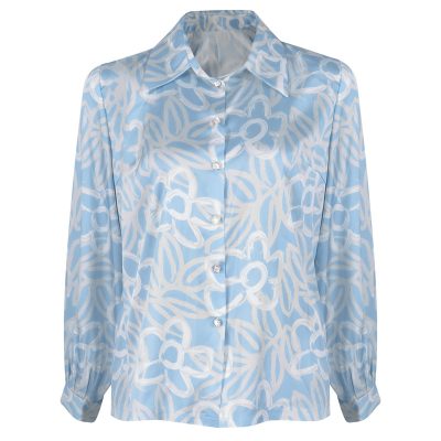 شومیز آستین بلند زنانه مدل ساتن سیلک رنگ آبی