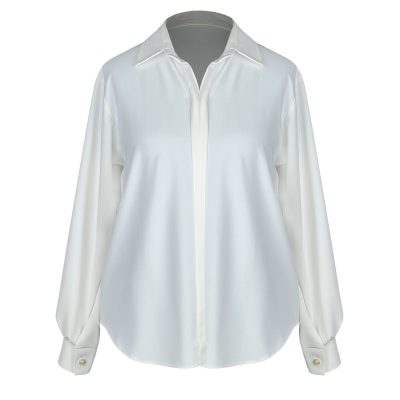 شومیز آستین بلند زنانه مدل بیسیک کرپ کد AK1174 رنگ سفید