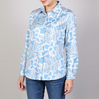 شومیز آستین بلند زنانه مدل لینن چاپی فلورا