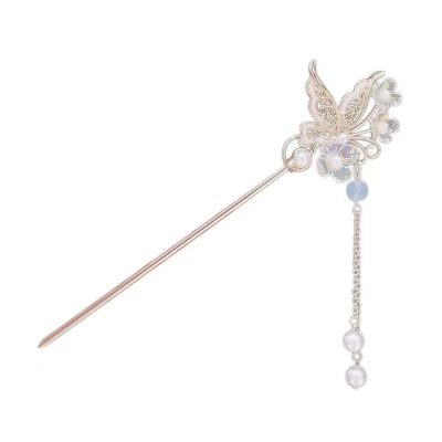 گیره مو زنانه مدل کانزاشی طرح گل و پروانه آویزدار