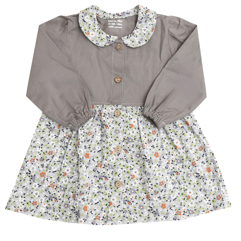 پیراهن نوزادی ریکالاکو مدل چیندار بهار رنگ طوسی