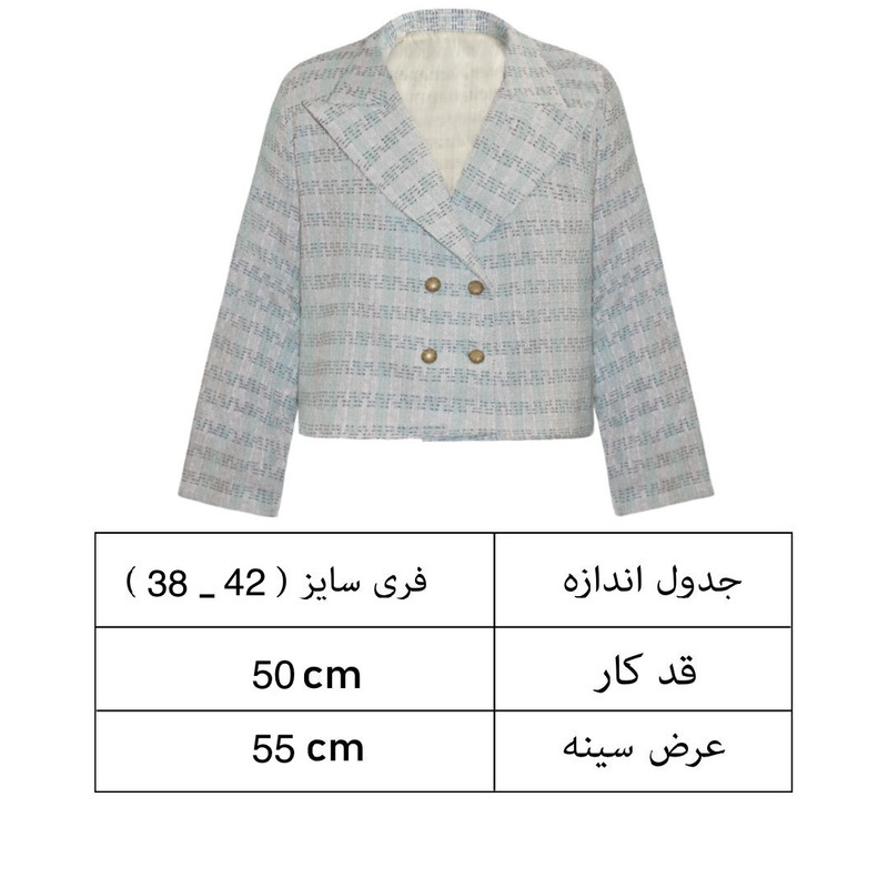 این کت از جنس پارچه ی توییت شنل مناسب برای فصل پاییز ، زمستان و بهار و مناسب برای سایز 38 تا 42 می باشد. رنگ این کار ترکیبی است . |