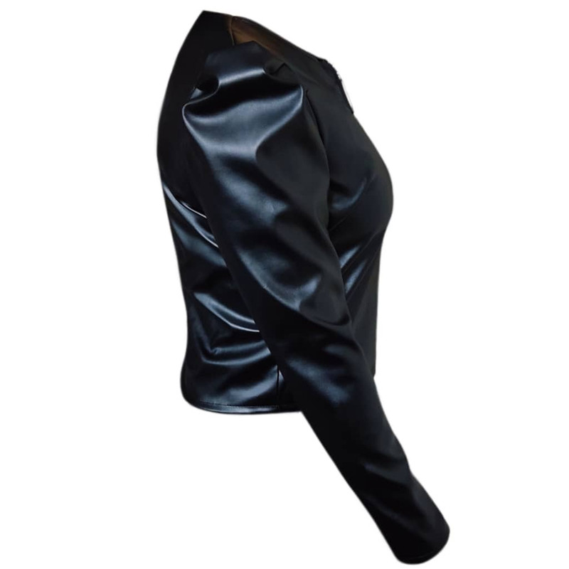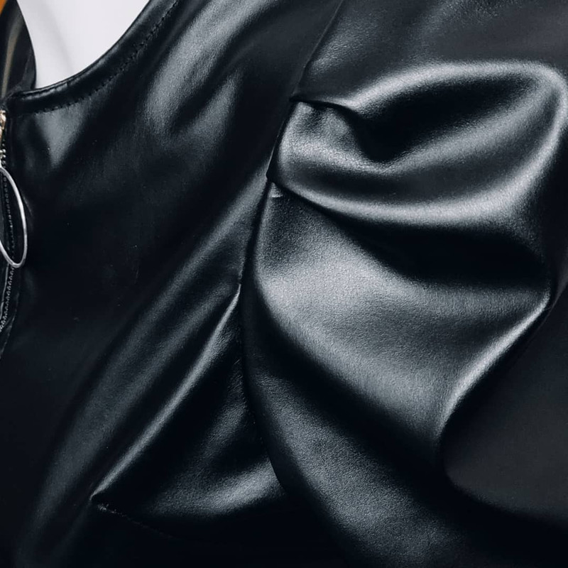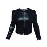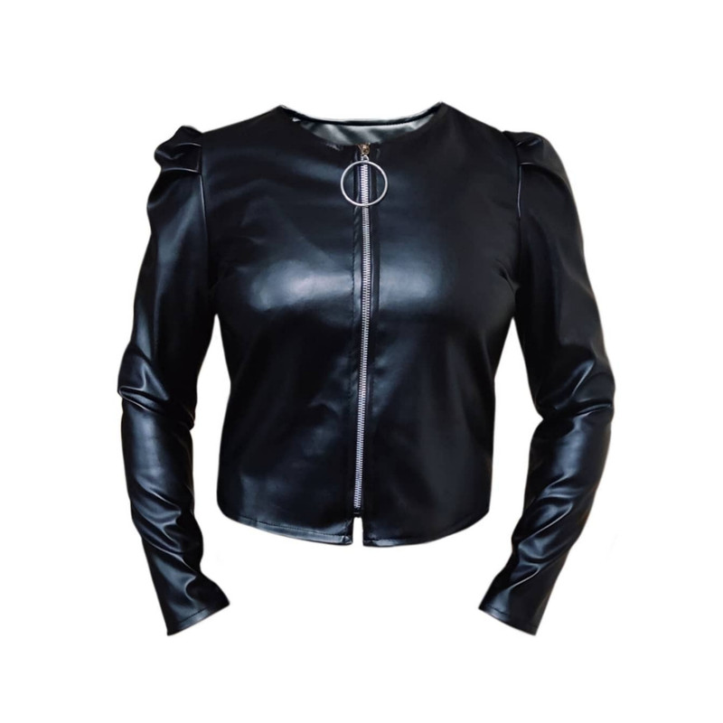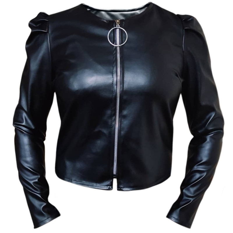کراپ فوق آستین بلند است و از جنس چرم مصنوعی و پلی آمید می باشد که کاملا مشابه چرم است ولی با قیمتی بسیار مناسب تر نسبت به چرم در اختیار شما قرار میگیرد.قد کراپ از سر شانه تا پایین 48 سانتی متر است و عرض کمر آن 46 سانتی متر می باشد.که با این ابعاد بازه ی سایزی 34 تا 42 را پوشش می دهد و مناسب بانوان فیت و اندامی می باشد.در قسمت جلو زیپ کار شده است و زیبایی در طراحی سر شانه های این کار باعث خاص شدن دو چندان آن میشود و شما می توانید آن را با تمامی شلوارها و دامن های جین و کتان در رنگ های متفاوت ست کنید.پارچه ی کار در داخل دارای لایه ی نازک کرک جهت راحتی شماست.کاری بسیار مناسب جهت دور همی ها و مهمانی های خانوادگی شما.