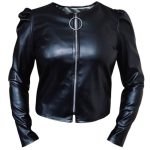 کراپ فوق آستین بلند است و از جنس چرم مصنوعی و پلی آمید می باشد که کاملا مشابه چرم است ولی با قیمتی بسیار مناسب تر نسبت به چرم در اختیار شما قرار میگیرد.قد کراپ از سر شانه تا پایین 48 سانتی متر است و عرض کمر آن 46 سانتی متر می باشد.که با این ابعاد بازه ی سایزی 34 تا 42 را پوشش می دهد و مناسب بانوان فیت و اندامی می باشد.در قسمت جلو زیپ کار شده است و زیبایی در طراحی سر شانه های این کار باعث خاص شدن دو چندان آن میشود و شما می توانید آن را با تمامی شلوارها و دامن های جین و کتان در رنگ های متفاوت ست کنید.پارچه ی کار در داخل دارای لایه ی نازک کرک جهت راحتی شماست.کاری بسیار مناسب جهت دور همی ها و مهمانی های خانوادگی شما